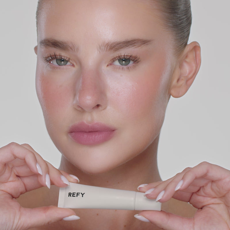 We formulated the REFY Lip Gloss to be moisturising, a high shine gloss with all the benefits of a balm. The combination of hyaluronic acid, jojoba seed oil and shea butter not only provide moisture, but ensure it’s retained, leaving a smoothing glass-like finish. If you’re looking for more of a balm-like texture, the REFY Lip Blush feels like a balm yet colours like a tint.